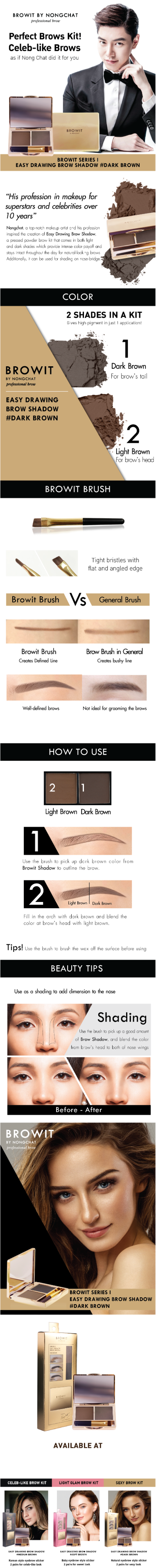 Achieve perfectly defined brows with Easy Drawing Brow Shadow, an eyebrow powder that combines 2 ideal shades for professional-like look which are light and dark to offer your brows a dimensional and natural look. In addition, it can be used as bronzer for contouring the sides of your nose.